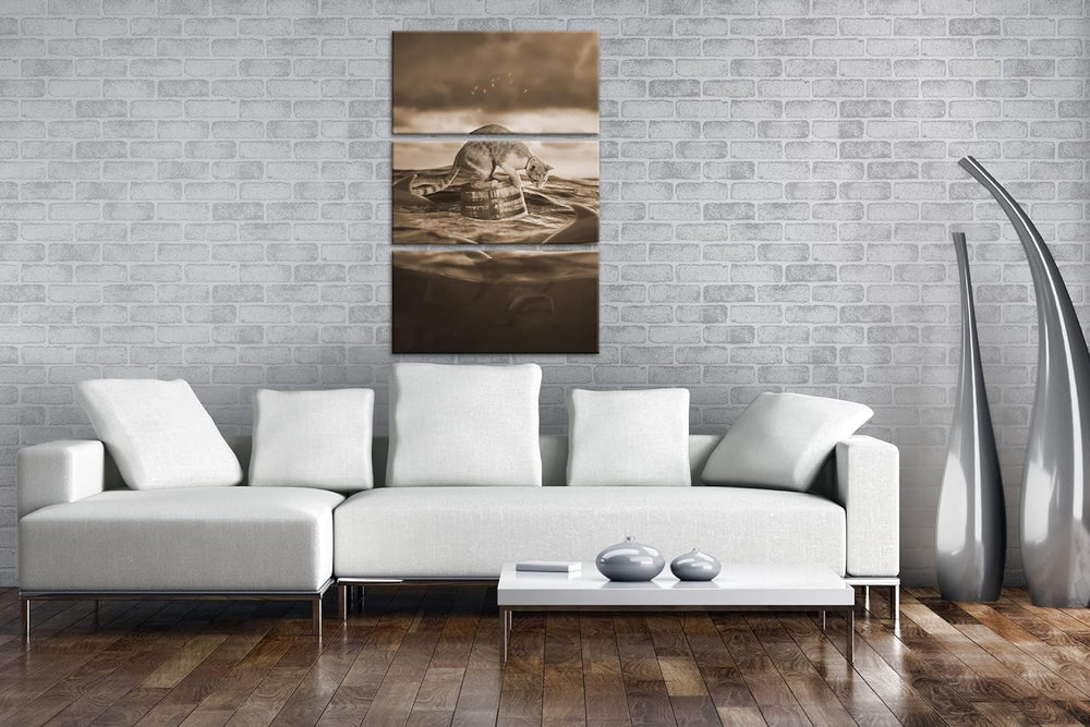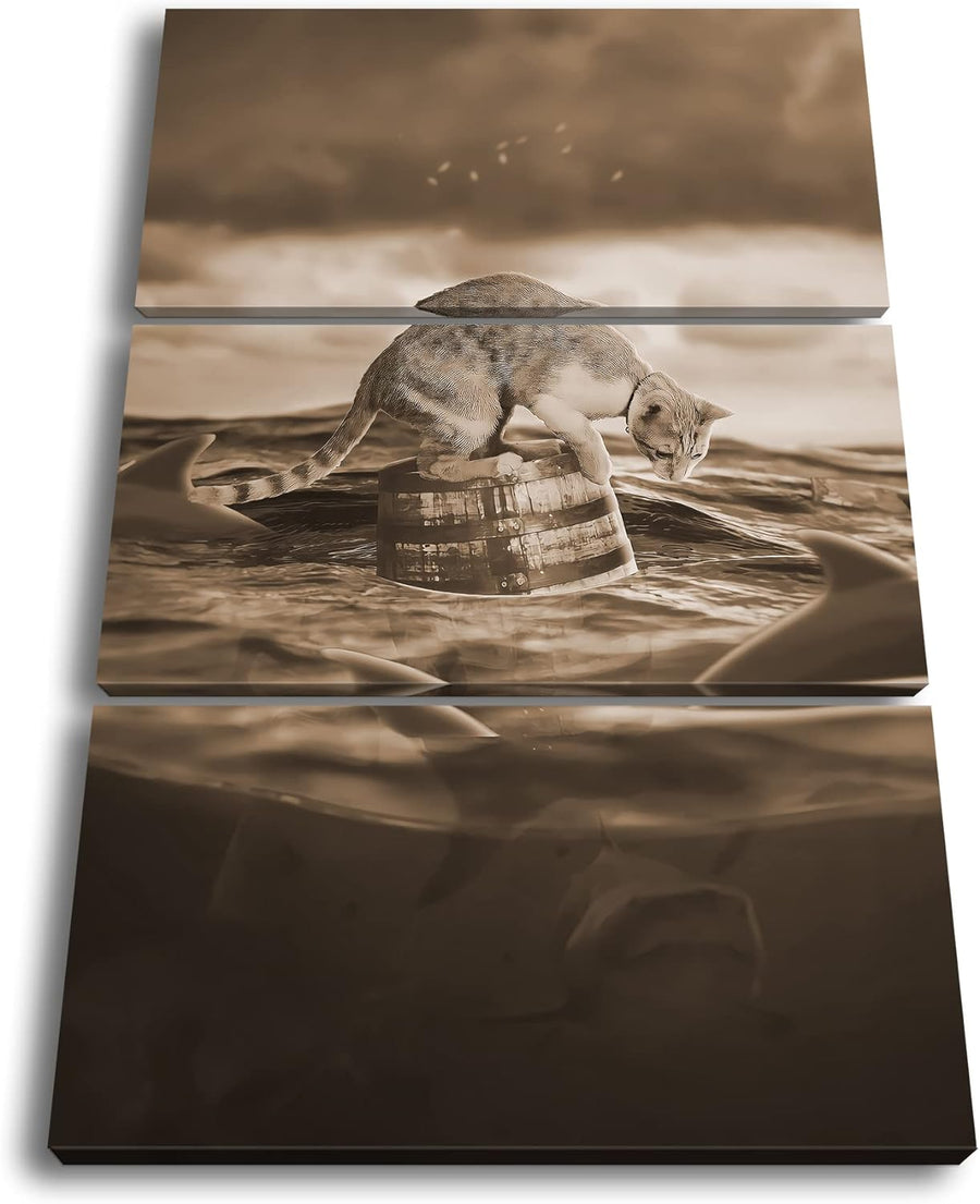 deyoli Katze im Hai verseuchten Gewässer Format: 3Teilig Effekt: Sepia als Leinwandbild, Motiv ferti