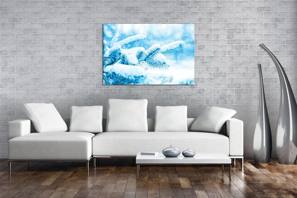 deyoli Kiefernzweige im Winter Format 80x60 Effekt: Monocrome Blau als Leinwandbild, Motiv fertig ge
