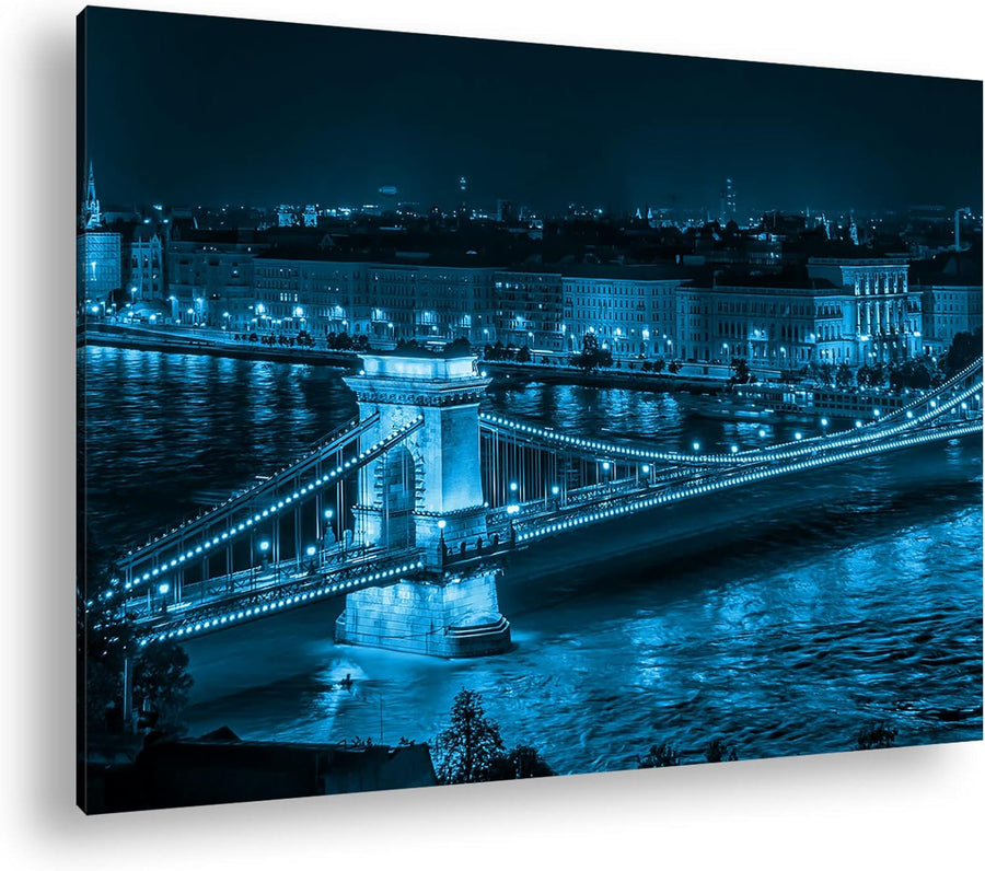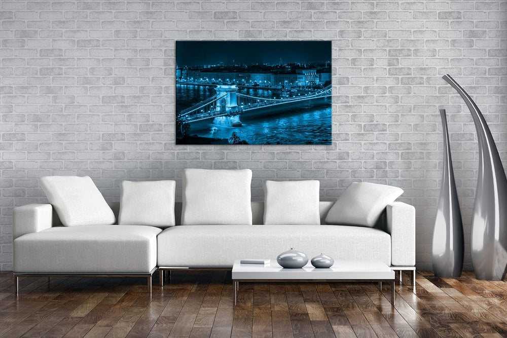 deyoli Kettenbrücke in Budapest bei Nacht Format 80x60 Effekt: Monocrome Blau als Leinwandbild, Moti