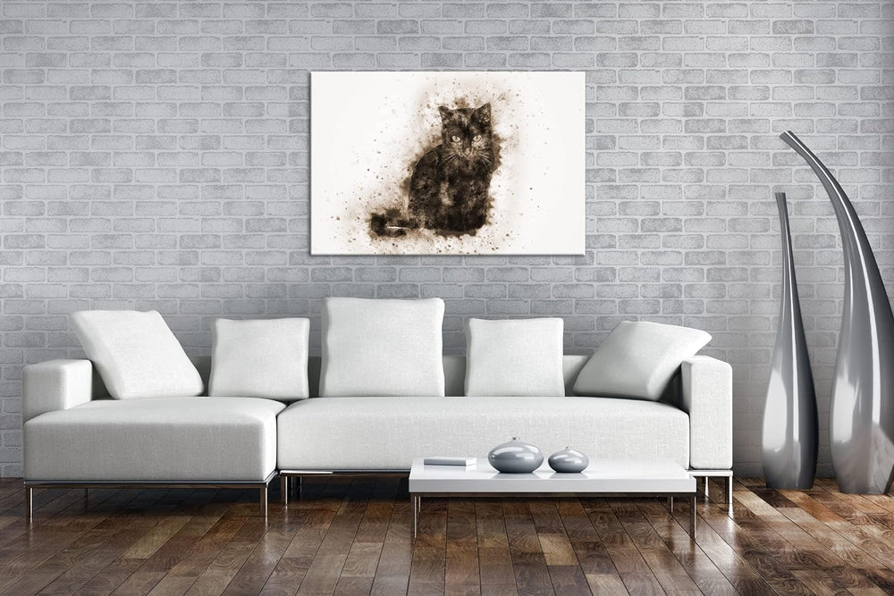 deyoli Katze Hauskatze Format: 100x70 Effekt: Sepia als Leinwandbild, Motiv fertig gerahmt auf Echth