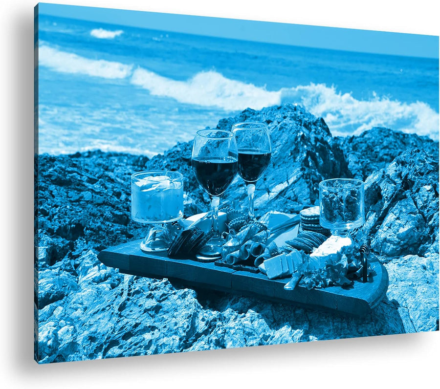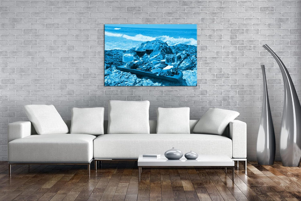 deyoli Käseplatte am Strand Format: 80x60 Effekt: Monocrome Blau als Leinwand, Motiv fertig gerahmt