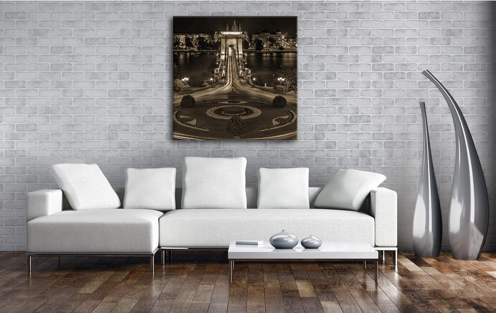 deyoli Kettenbrücke in Budapest bei Nacht Format: 60x60 Effekt: Sepia als Leinwandbild, Motiv auf Ec
