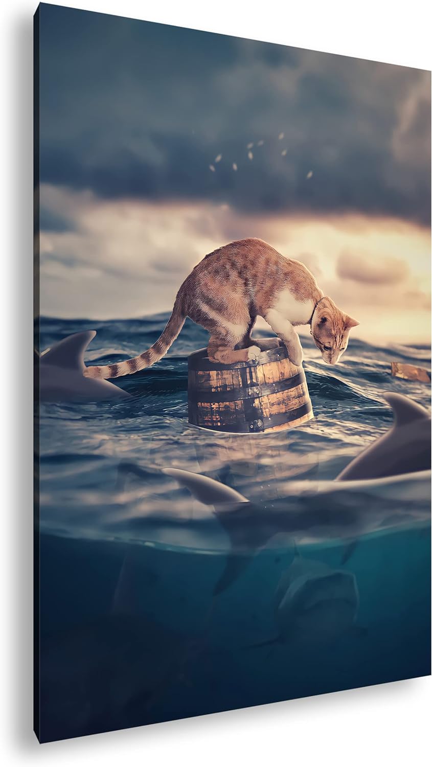 deyoli Katze im Hai verseuchten Gewässer Format: 120x80 als Leinwandbild, Motiv fertig gerahmt auf E