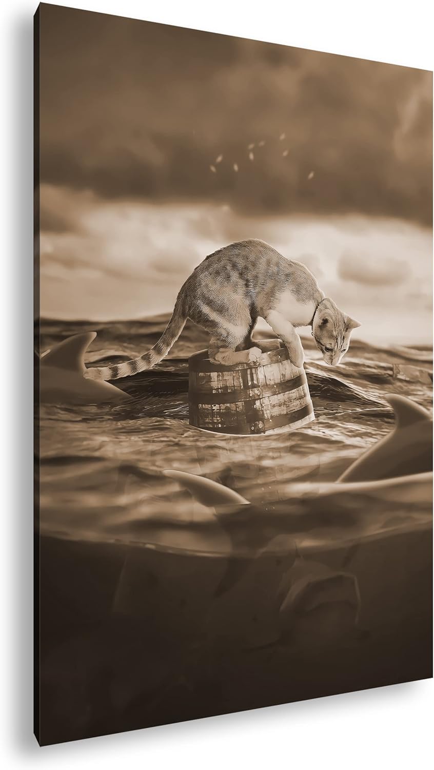 deyoli Katze im Hai verseuchten Gewässer Format: 80x60 Effekt: Sepia als Leinwandbild, Motiv fertig