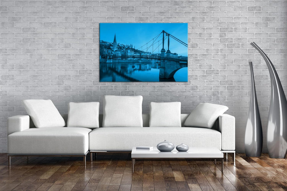 deyoli Kettenbrücke im schönen Budapest Format 80x60 Effekt: Monocrome Blau als Leinwandbild, Motiv