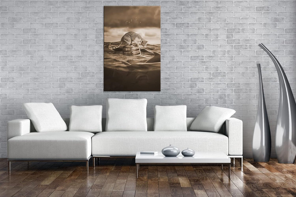 deyoli Katze im Hai verseuchten Gewässer Format: 120x80 Effekt: Sepia als Leinwandbild, Motiv fertig