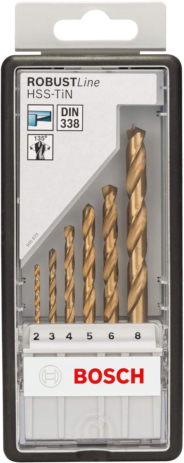 Bosch Professional 6tlg. Metallbohrer-Set HSS-TiN Robust Line Durchmesser: 2.0 - 8.0, Durchmesser: 2