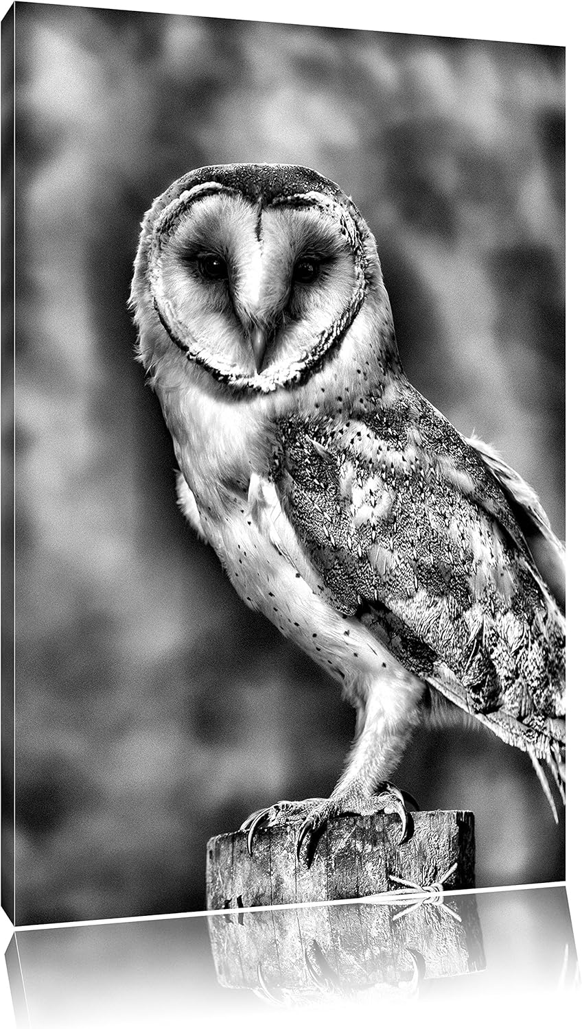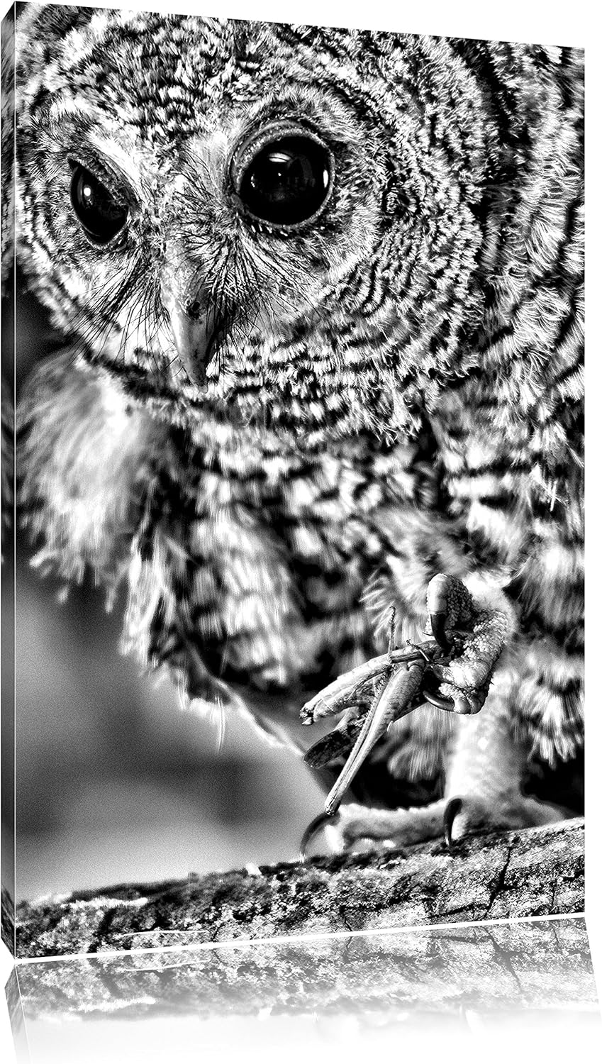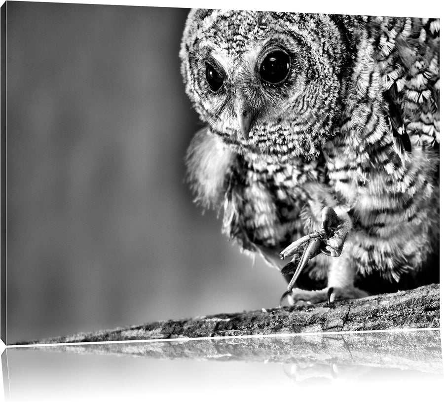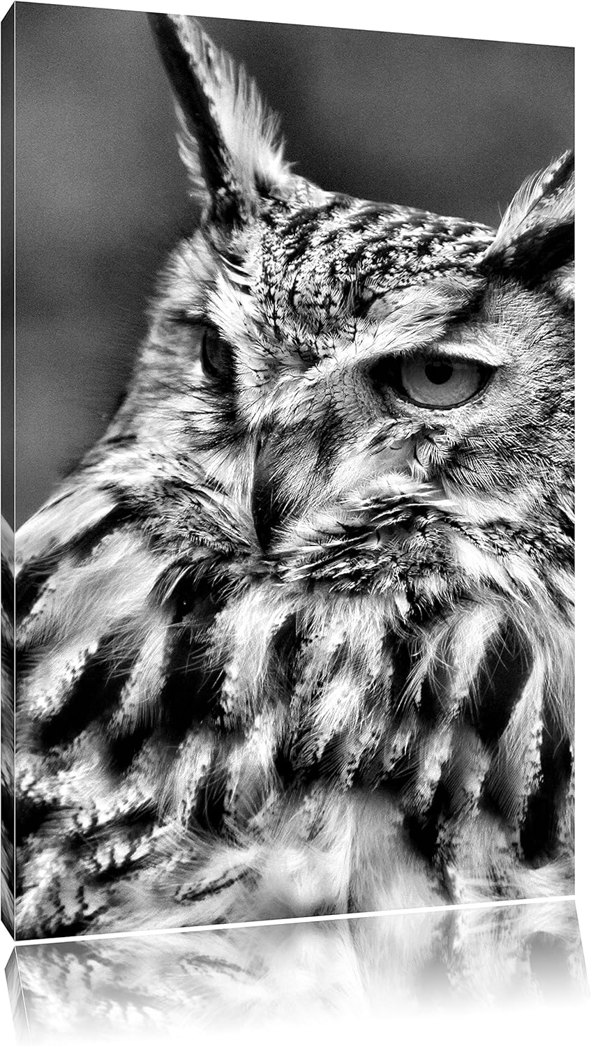 Monocrome, Eule, Format: 100x70 auf Leinwand, XXL riesige Bilder fertig gerahmt mit Keilrahmen, Kuns