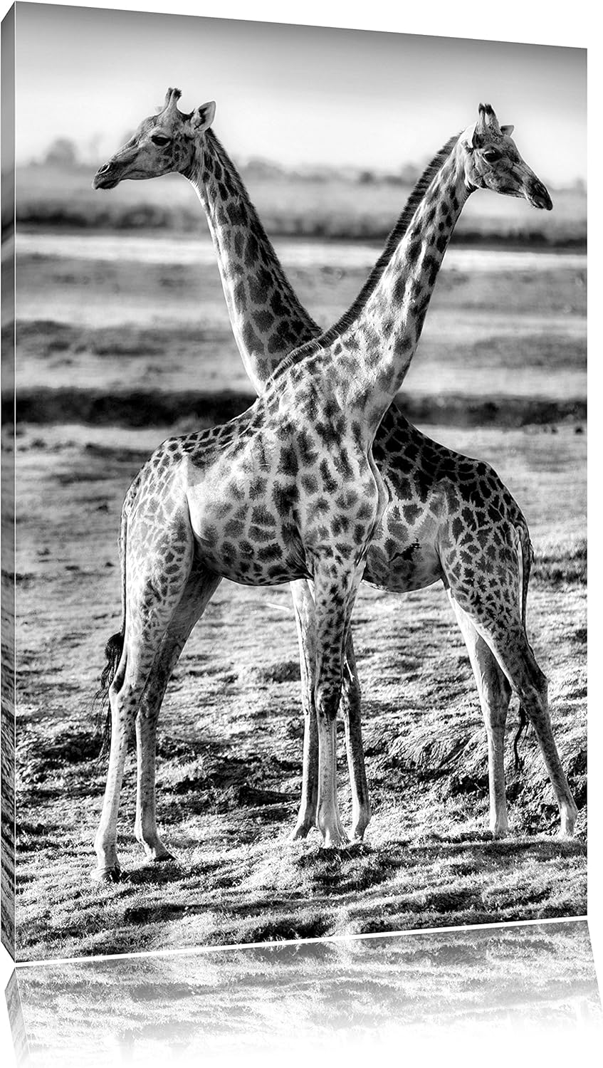 Monocrome, Giraffen Paar, Format: 100x70 auf Leinwand, XXL riesige Bilder fertig gerahmt mit Keilrah