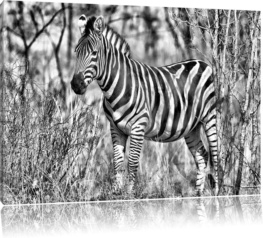 Monocrome, einsames Zebra, Format: 100x70 auf Leinwand, XXL riesige Bilder fertig gerahmt mit Keilra