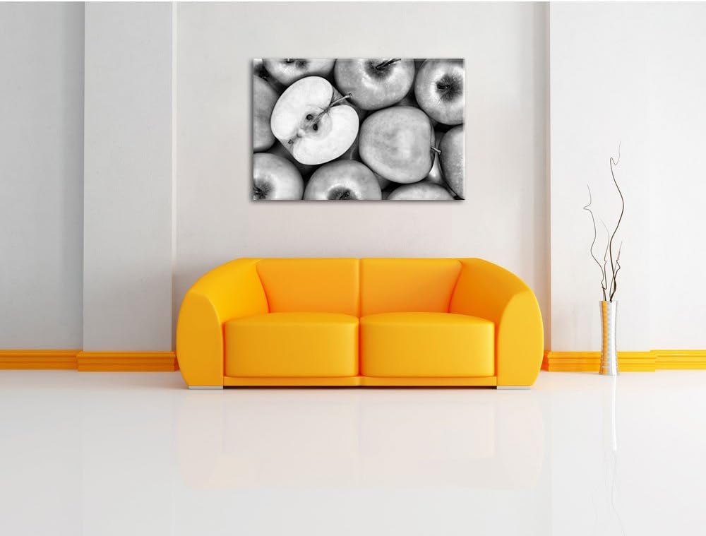 Monocrome, Grüne Äpfel, Format: 100x70 auf Leinwand, XXL riesige Bilder fertig gerahmt mit Keilrahme