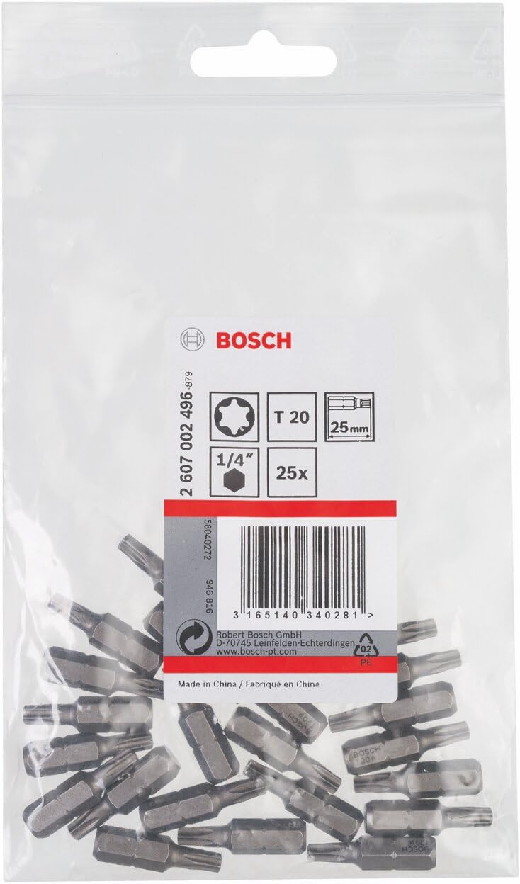Bosch Professional Bit Extra-Hart für Innen-Torx-Schrauben (T20, Länge: 25 mm, 25 Stück) 25 mm, 25 S