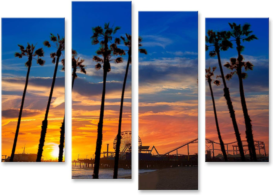 islandburner Bild auf Leinwand Santa Monica Kalifornien Sonnenuntergang Am Pier Bilder Wandbilder Po