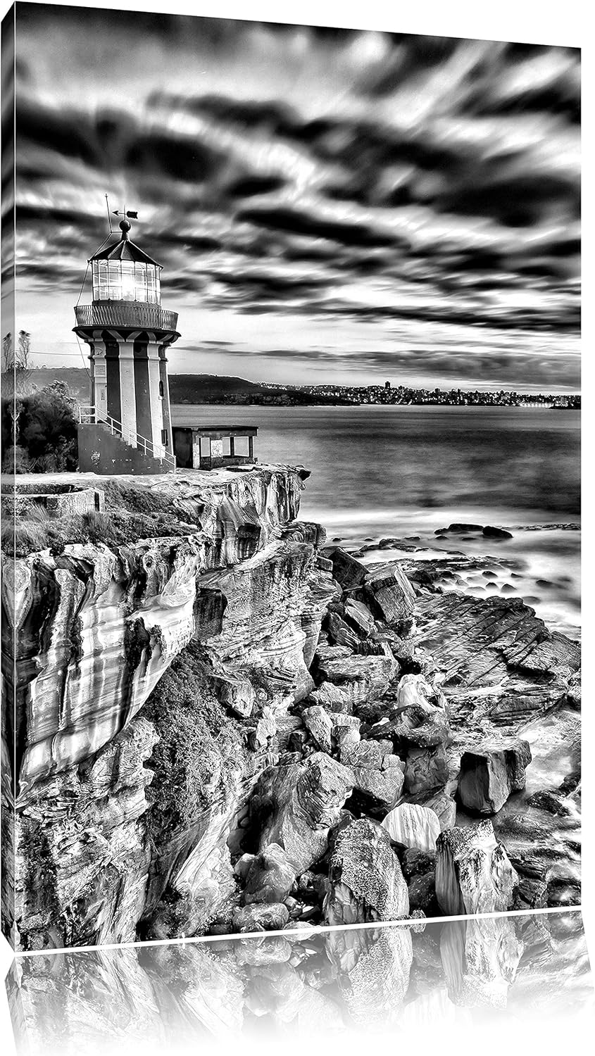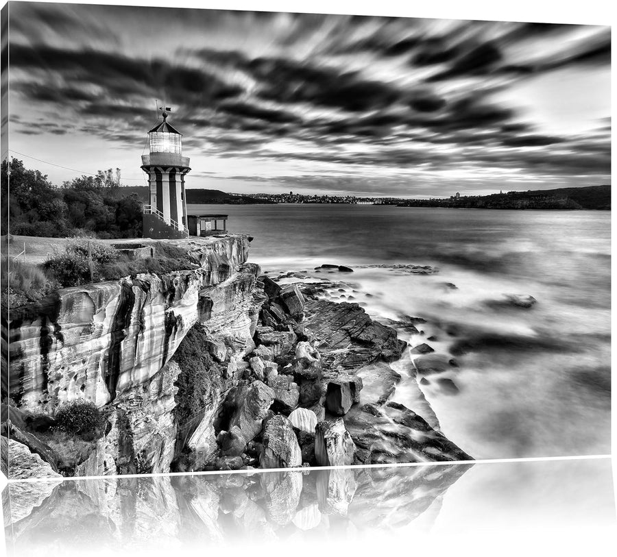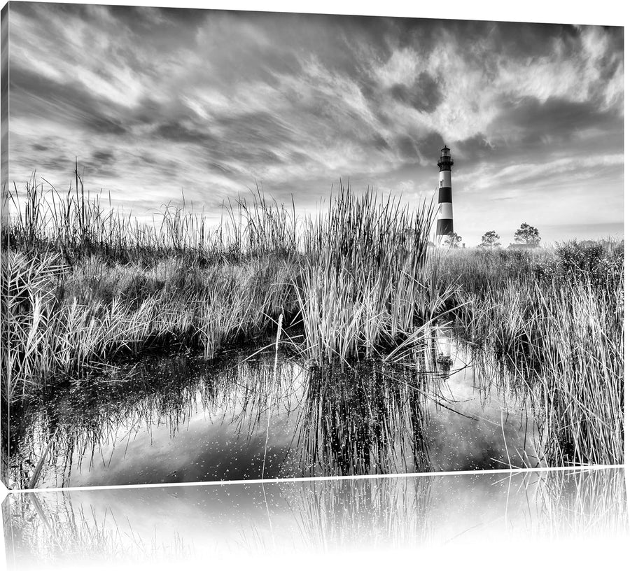 Monocrome, Leuchtturm, Format: 100x70 auf Leinwand, XXL riesige Bilder fertig gerahmt mit Keilrahmen