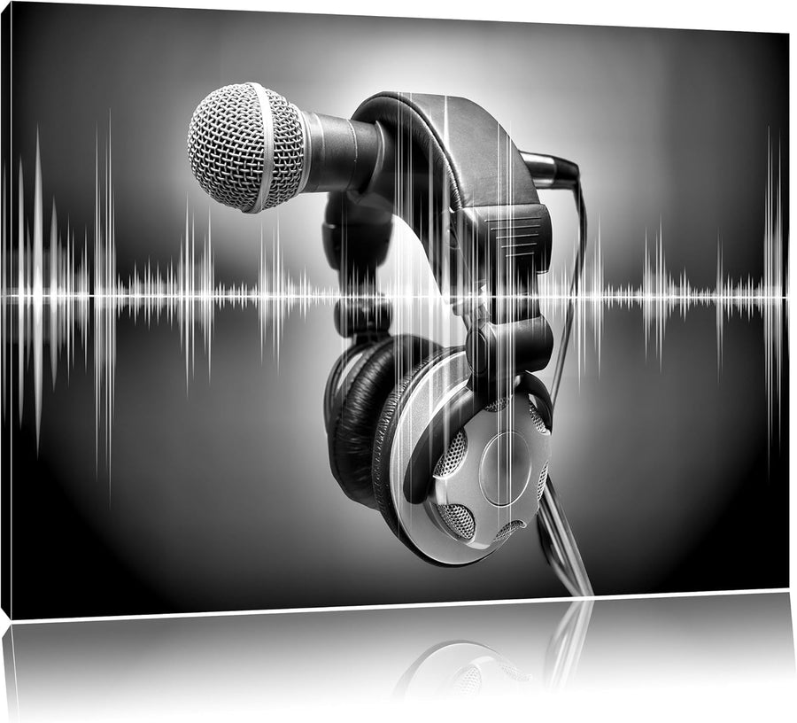 Monocrome, Kopfhörer, Format: 100x70 auf Leinwand, XXL riesige Bilder fertig gerahmt mit Keilrahmen,