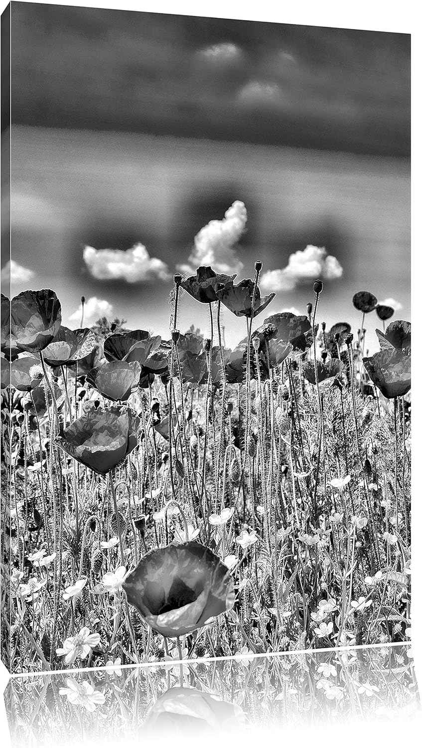 Monocrome, Mohnwiese, Format: 100x70 auf Leinwand, XXL riesige Bilder fertig gerahmt mit Keilrahmen,