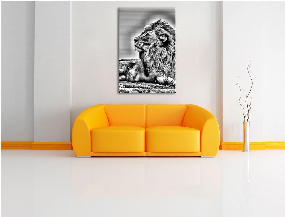 Monocrome, Löwenteenager, Format: 100x70 auf Leinwand, XXL riesige Bilder fertig gerahmt mit Keilrah