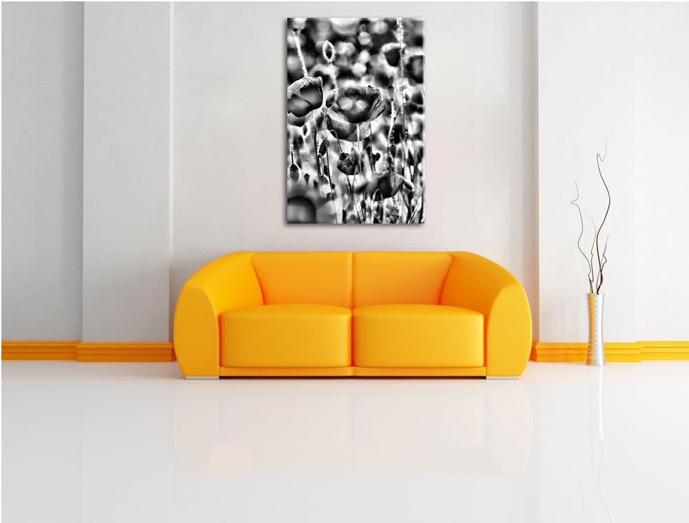 Monocrome, Mohnblumen, Format: 100x70 auf Leinwand, XXL riesige Bilder fertig gerahmt mit Keilrahmen