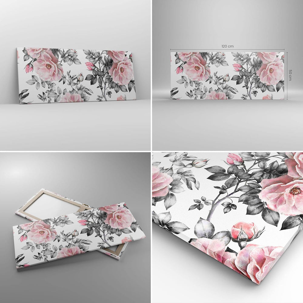Wandbilder Dekoration Wohnzimmer Blumen Blätter Pflanze Rose Panorama Bilder auf Leinwand 120x50cm L