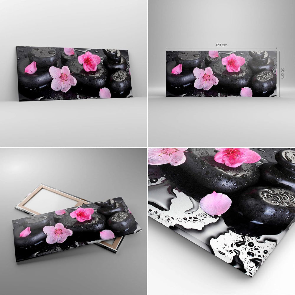 Wandbilder Dekoration Wohnzimmer Blumen Steine Tropfen Spa Panorama Bilder auf Leinwand 120x50cm Lei