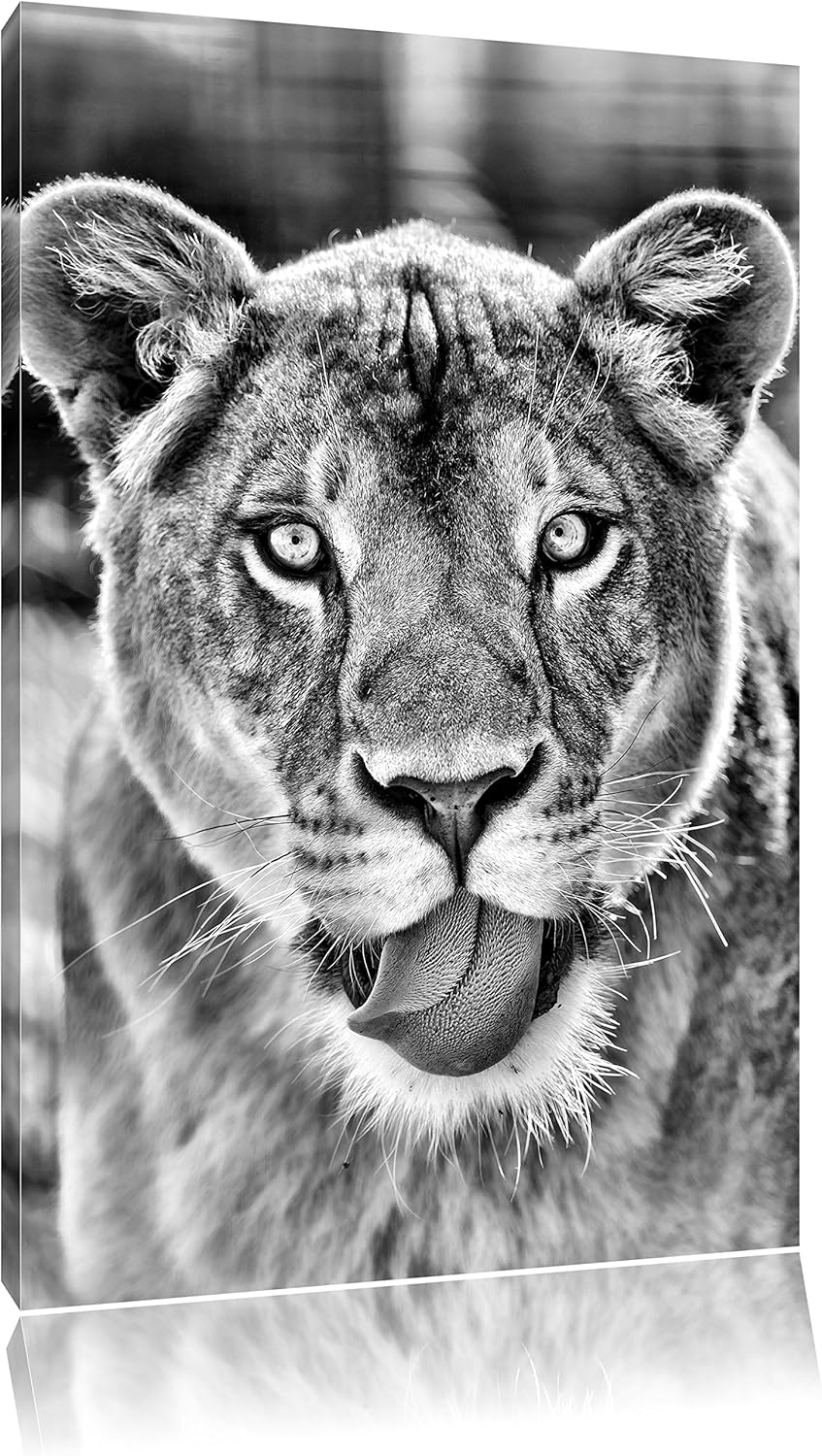 Monocrome, schöne Löwin , Format: 100x70 auf Leinwand, XXL riesige Bilder fertig gerahmt mit Keilrah