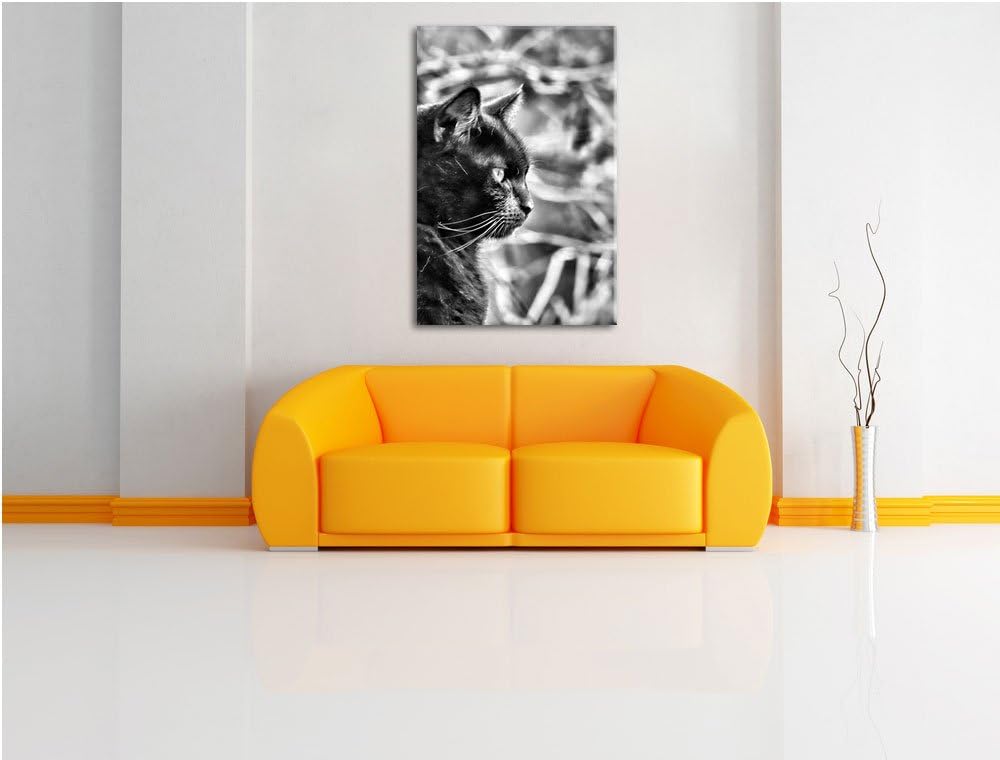 Monocrome, schwarze Katze, Format: 100x70 auf Leinwand, XXL riesige Bilder fertig gerahmt mit Keilra