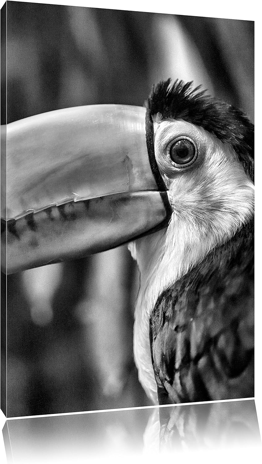 Monocrome, schöner Tukan, Format: 100x70 auf Leinwand, XXL riesige Bilder fertig gerahmt mit Keilrah