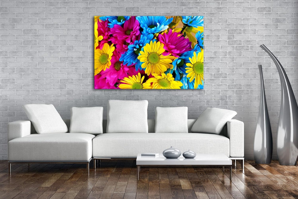 deyoli kunterbunte Gänseblümchen Format: 100x70 als Leinwandbild, Motiv fertig gerahmt auf Echtholzr