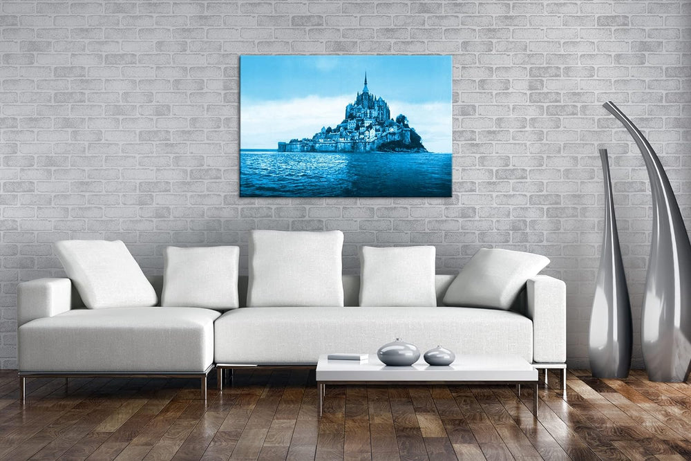 deyoli Küste von Mont St Michel Format 80x60 Effekt: Monocrome Blau als Leinwandbild, Motiv fertig g