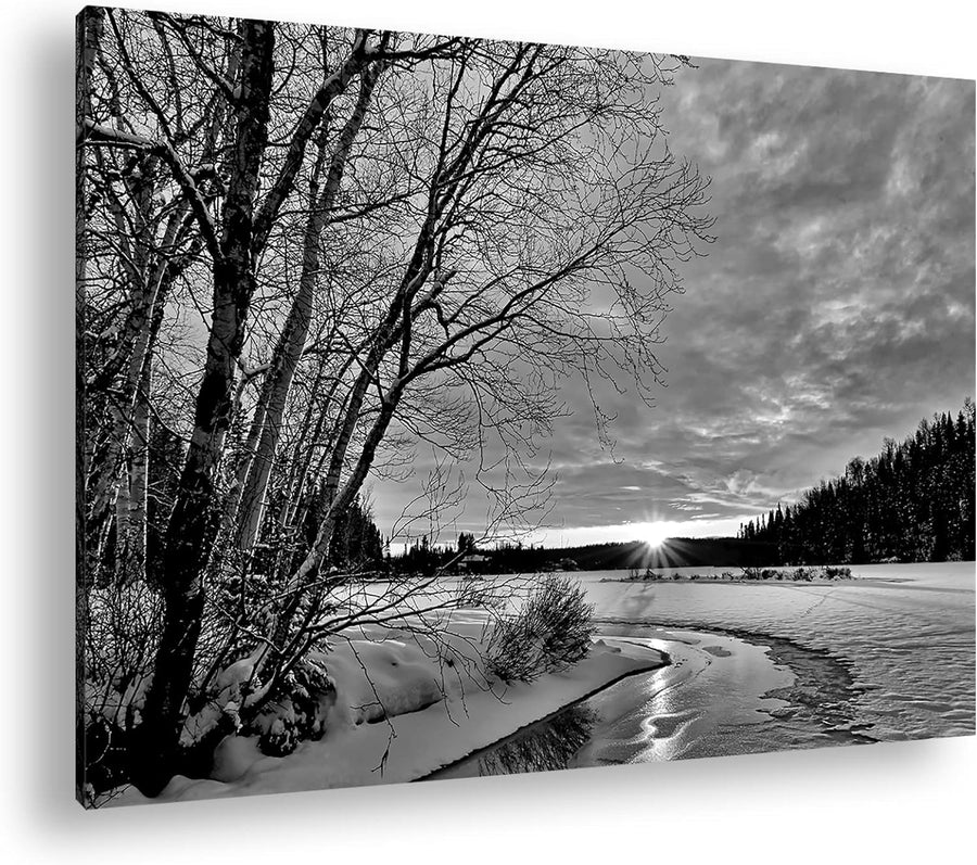 deyoli kunstvolle Winterlandschaft Format: 80x60 Effekt: Schwarz&Weiss als Leinwandbild, Motiv ferti