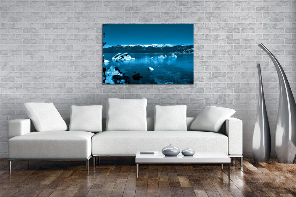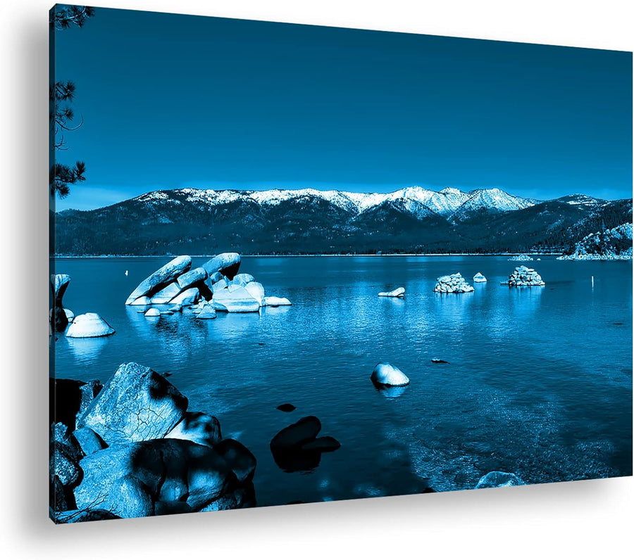 deyoli Lake Tahoe in Kalifornien Format: 80x60 Effekt: Monocrome Blau als Leinwand, Motiv fertig ger
