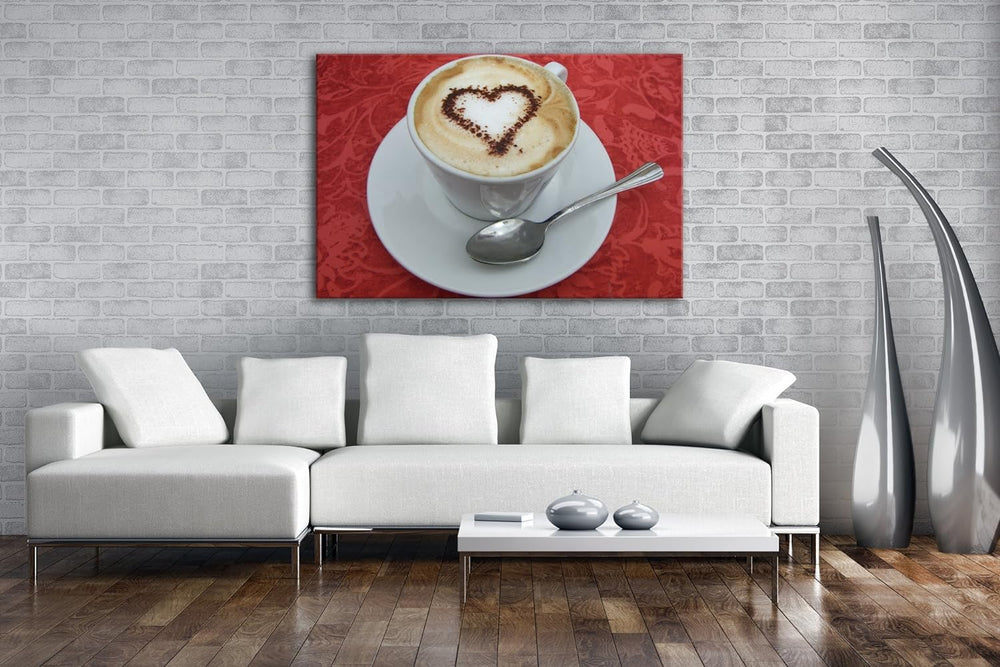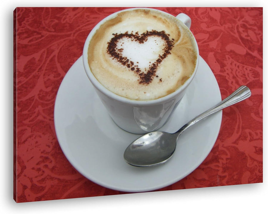 deyoli kunstvoller Kaffee mit Herz Format: 80x60 als Leinwandbild, Motiv fertig gerahmt auf Echtholz