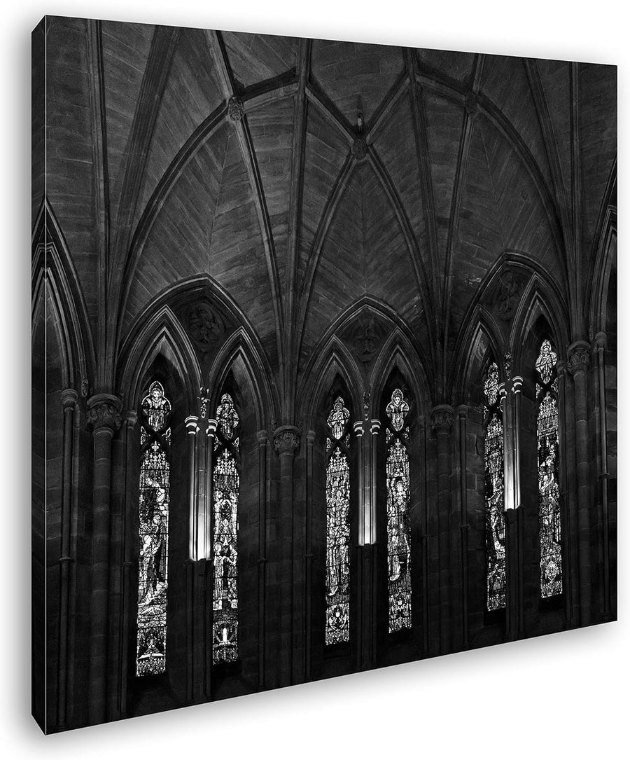 deyoli kunterbunte Kirchenfenster Format: 70x70 Effekt: Schwarz&Weiss als Leinwandbild, Motiv auf Ec