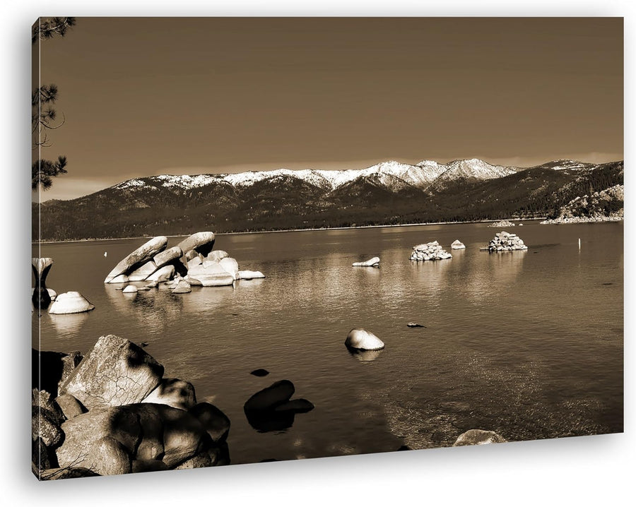 deyoli Lake Tahoe in Kalifornien Format: 80x60 Effekt: Sepia als Leinwand, Motiv fertig gerahmt auf