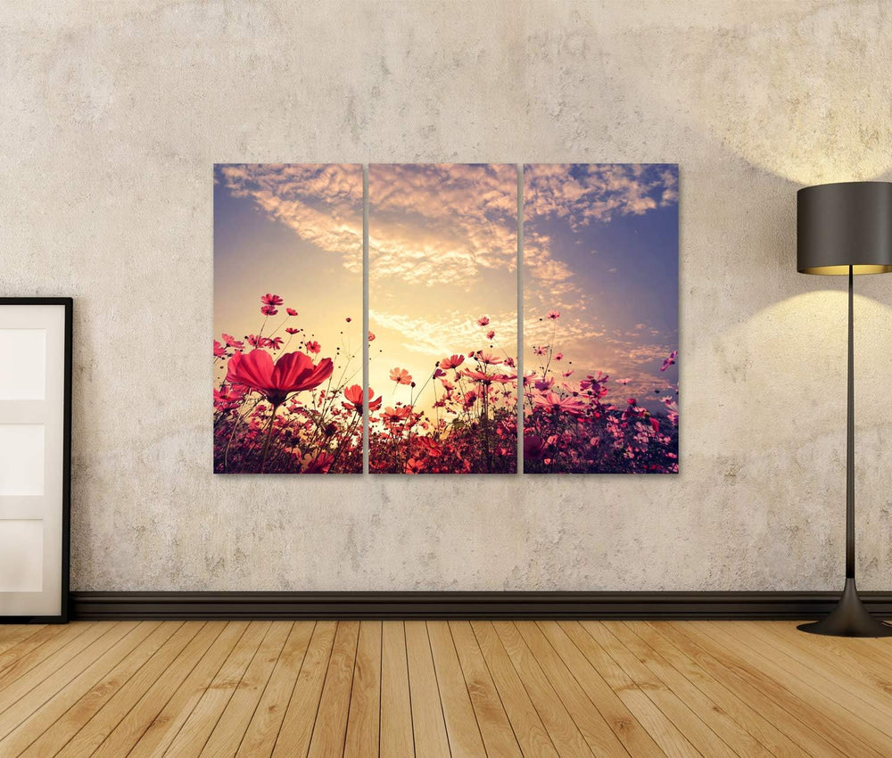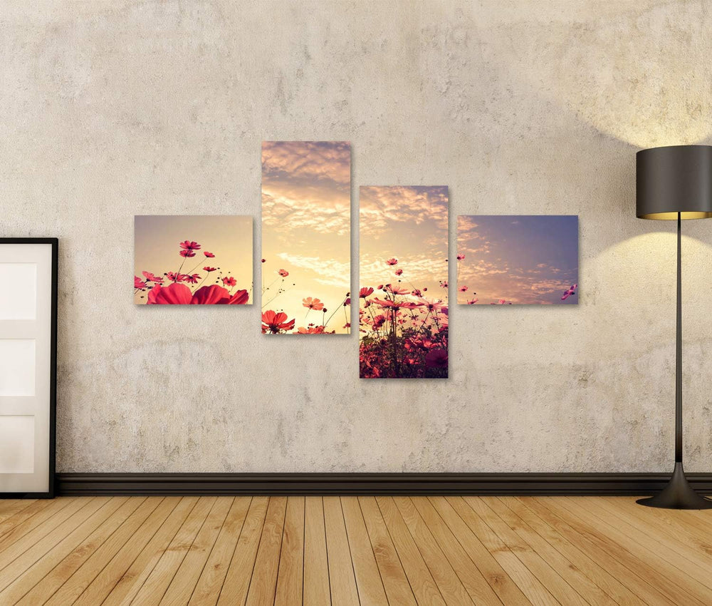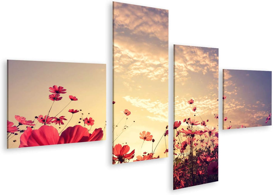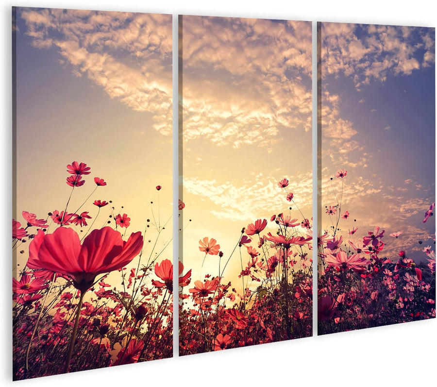 islandburner Bild auf Leinwand Schöne Rosa Rote Kosmos Blume Sonnenschein Landschaft Natur Bilder Wa