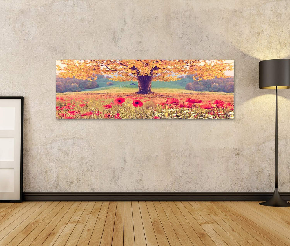 islandburner Bild auf Leinwand Schöne Landschaft Mohnblumen Baum Herbst Bilder Wandbilder Poster Lei