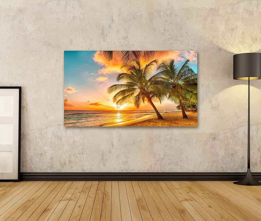 islandburner Bild auf Leinwand Schöner Sonnenuntergang Über Dem Meer Mit Blick Auf Palmen Barbados K