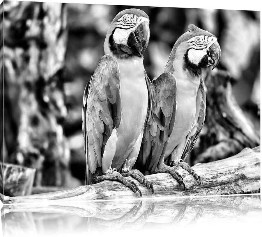 Monocrome, Zwei Papageien, Format: 100x70 auf Leinwand, XXL riesige Bilder fertig gerahmt mit Keilra