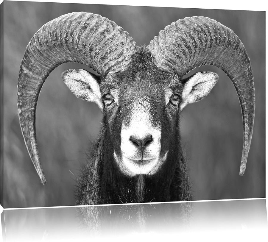 Mufflon Porträt Kunst B&W, Format: 100x70 auf Leinwand, XXL riesige Bilder fertig gerahmt mit Keilra