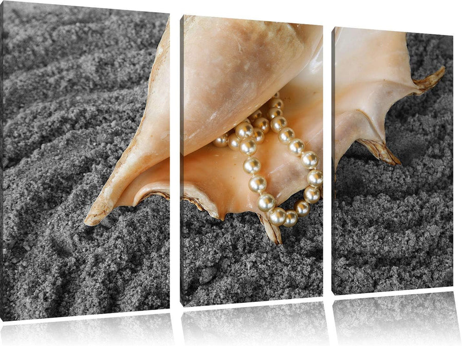 Muschel mit Perlenkette im Sand schwarz/weiss 3-Teiler Leinwandbild 120x80 Bild auf Leinwand, XXL ri