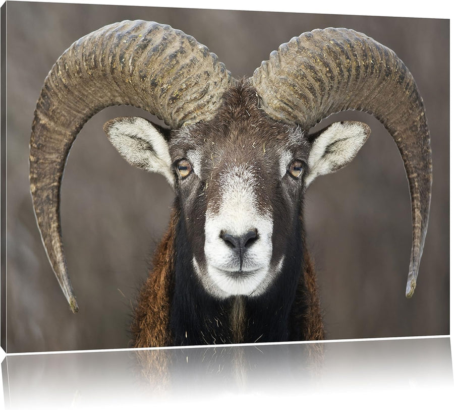 Mufflon Porträt, Format: 100x70 auf Leinwand, XXL riesige Bilder fertig gerahmt mit Keilrahmen, Kuns