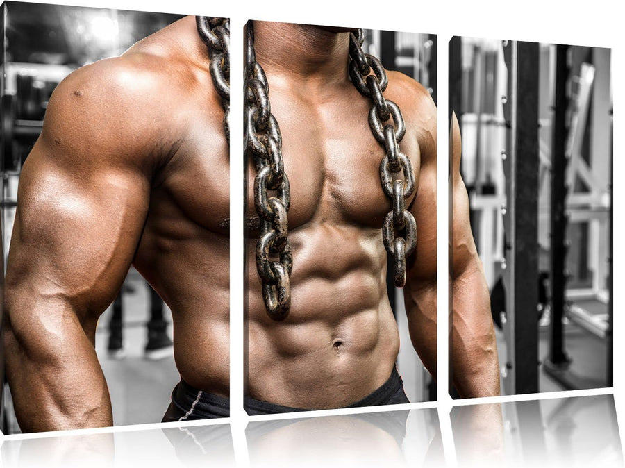 Muskelpaket mit Kette schwarz/weiss 3-Teiler Leinwandbild 120x80 Bild auf Leinwand, XXL riesige Bild