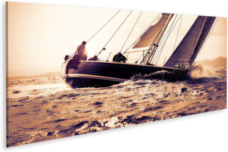 islandburner Bild auf Leinwand Segelboot Segeln Sonnenuntergang Bilder Wandbilder Poster, 80L x 40B