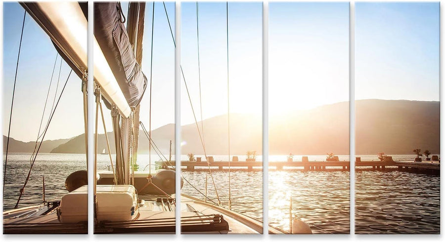 islandburner Bild auf Leinwand Segelboot Auf Dem Meer Mit Steg Bei Sonnenuntergang Bilder Wandbilder