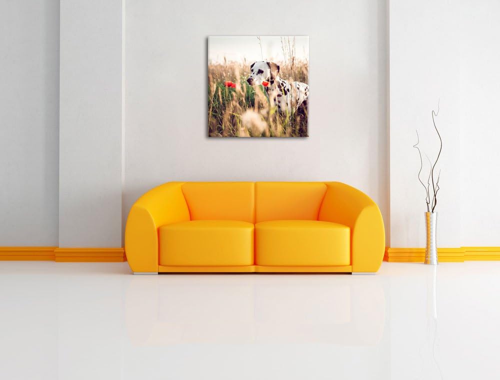 Neugieriger Hund im Feld, Format: 70x70 auf Leinwand, XXL riesige Bilder fertig gerahmt mit Keilrahm