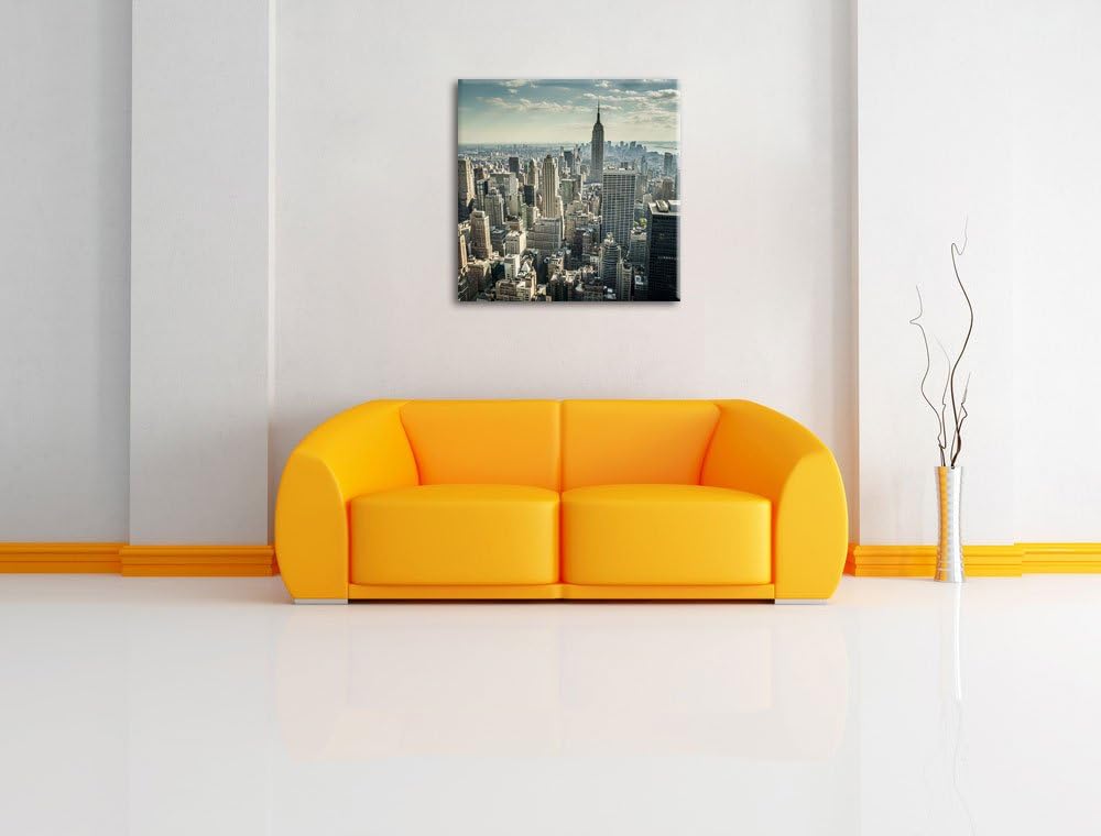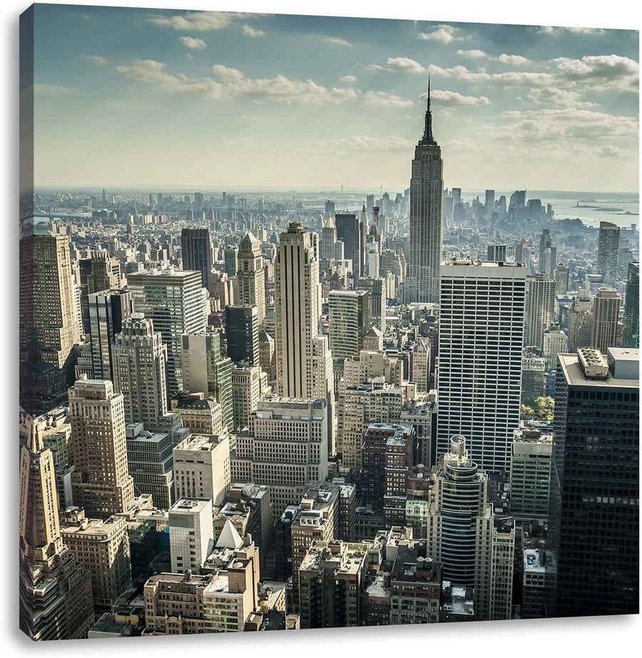 New York bei Tag, Format: 70x70 auf Leinwand, XXL riesige Bilder fertig gerahmt mit Keilrahmen, Kuns