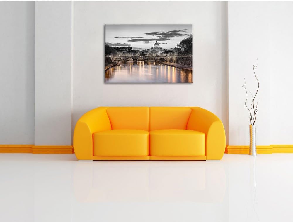 Nachtansicht der Basilika St. Peter in Rom B&W Detail, Format: 100x70 auf Leinwand, 100x70