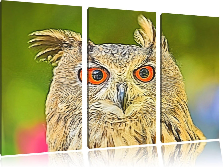 Niedliche Eule mit Grünen Augen schwarz/weiss 3-Teiler Leinwandbild 120x80 Bild auf Leinwand, XXL ri