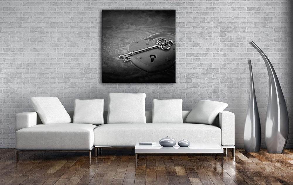 deyoli Liebesschloss Format: 60x60 Effekt: Schwarz&Weiss als Leinwandbild, Motiv auf Echtholzrahmen,
