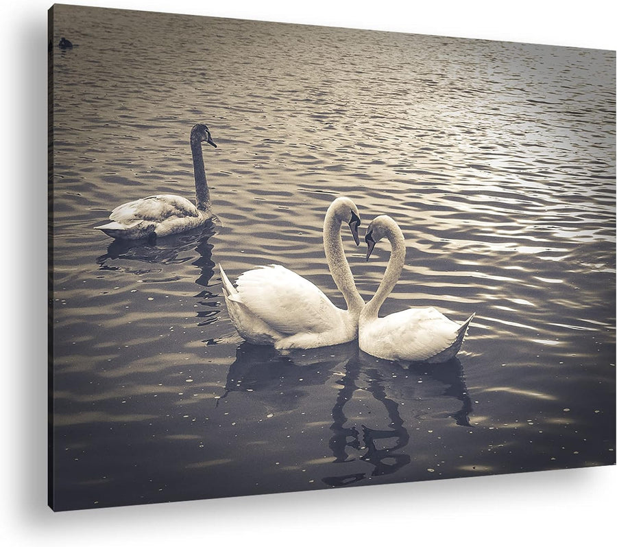 deyoli liebende Schwäne formen ein Herz Format: 80x60 als Leinwand, Motiv fertig gerahmt auf Echthol